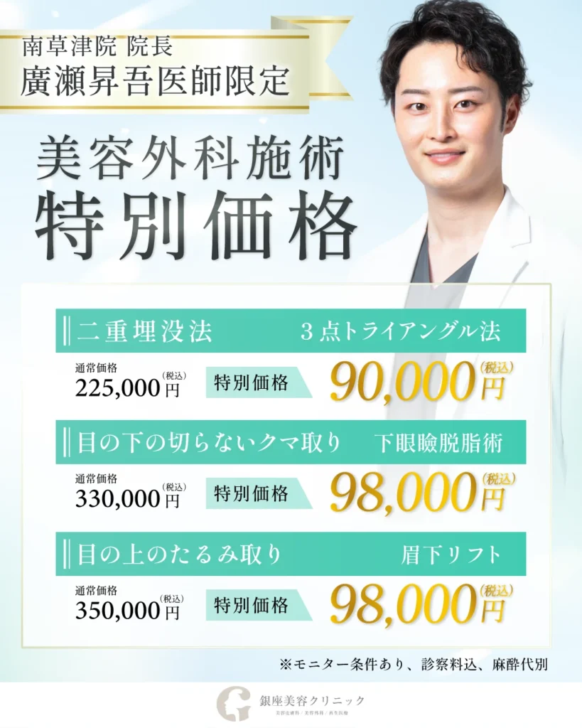 はじめまして。銀座美容クリニック南草津院 院長の廣瀨昇吾です。
