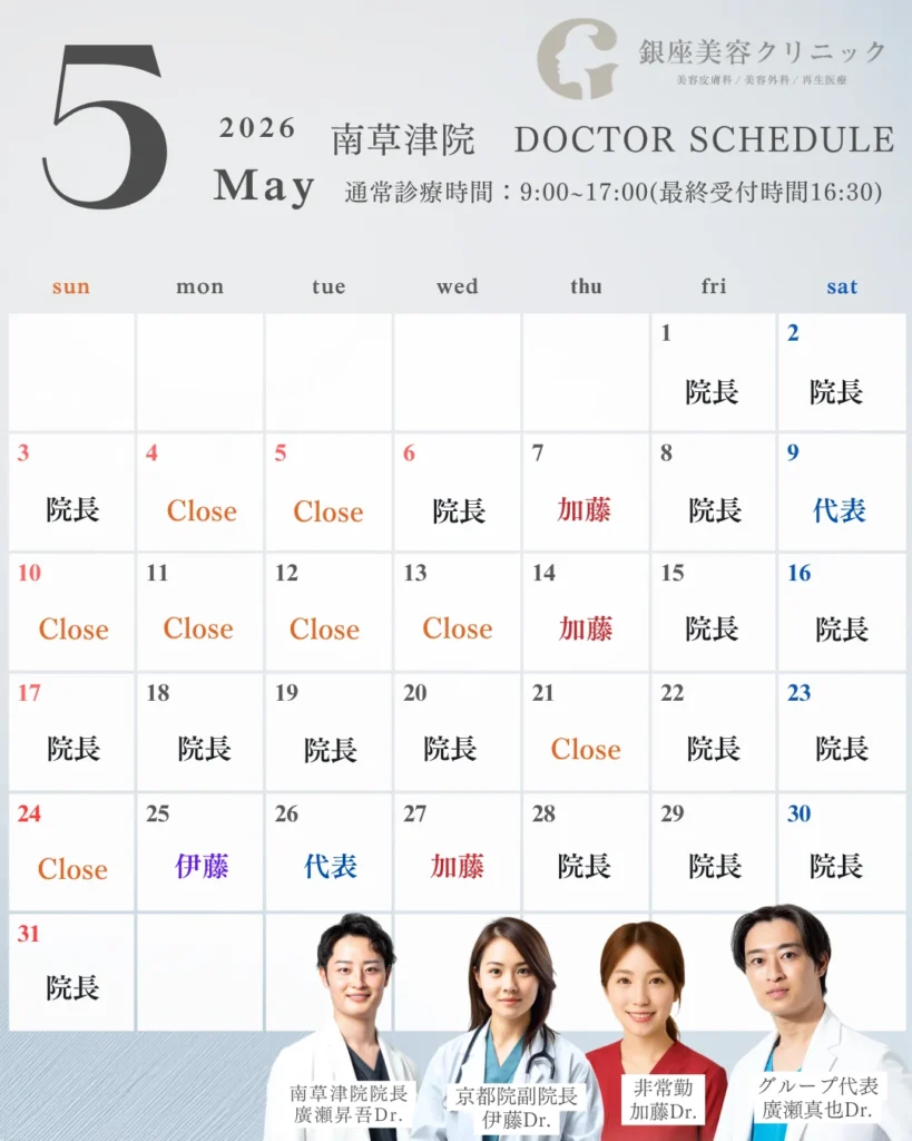 はじめまして。銀座美容クリニック南草津院 院長の廣瀨昇吾です。
