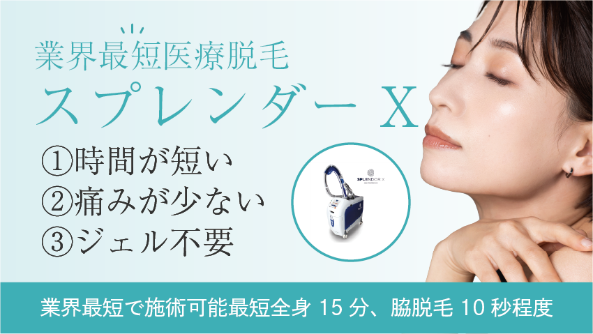 スプレンダーXは、レーザー脱毛器の種類で、2種類のレーザーを同時に照射し、肌質や毛質、濃さに限らず全ての方に脱毛効果が期待できます。