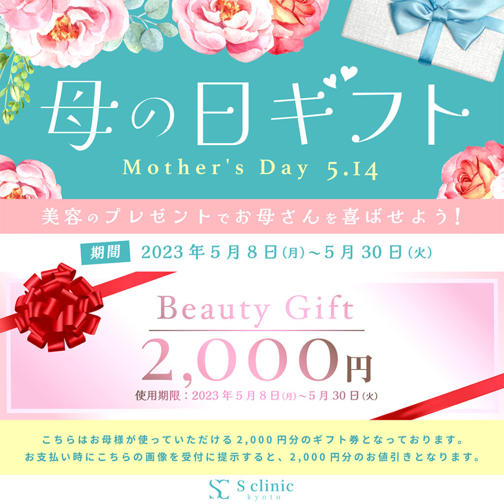 キャンペーン【母の日ギフト】が追加されました。 2023 5/06 キャンペーン キャンペーン【母の日ギフト】が追加されました。お母様が使用できる2,000円分のギフト券になります。 いつも頑張っているお母様へ美容のプレゼントになります! キャンペーン