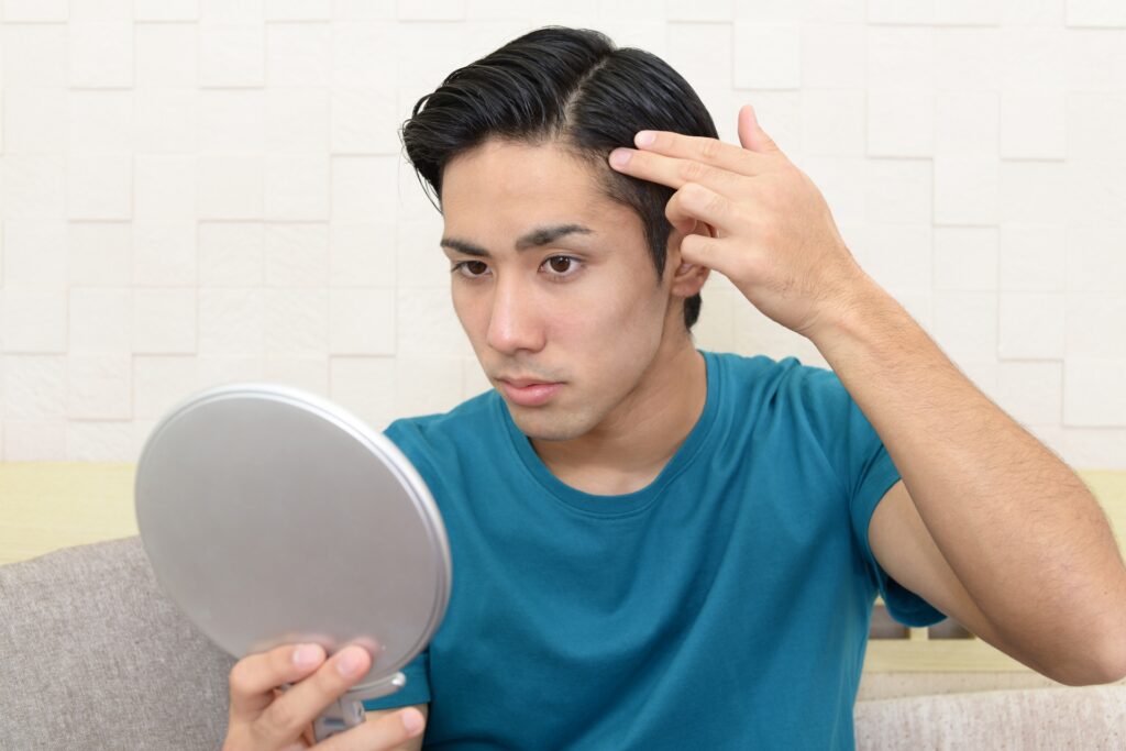 AGAは20歳以上の男性に多く見られる進行型の抜け毛や薄毛が代表的な症状で、額の生え際、頭頂部、つむじを中心に段々と症状が増えていきます。